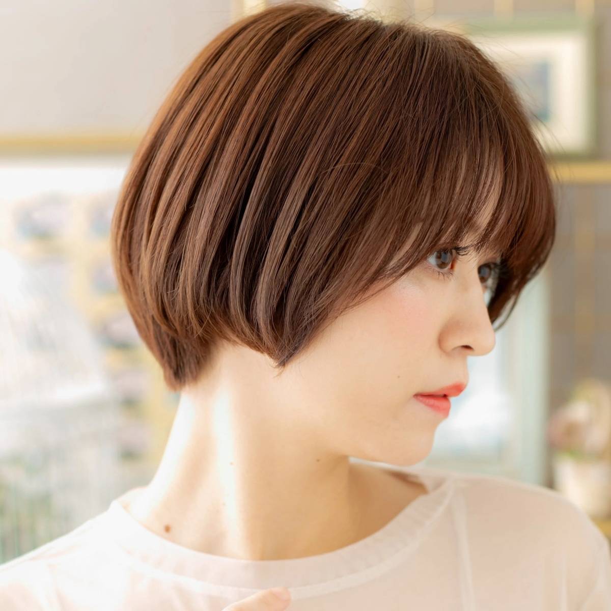 シルエットに丸みのあるマッシュベースのボブスタイルで、頭の形がきれいに見えるのも嬉しい♪
