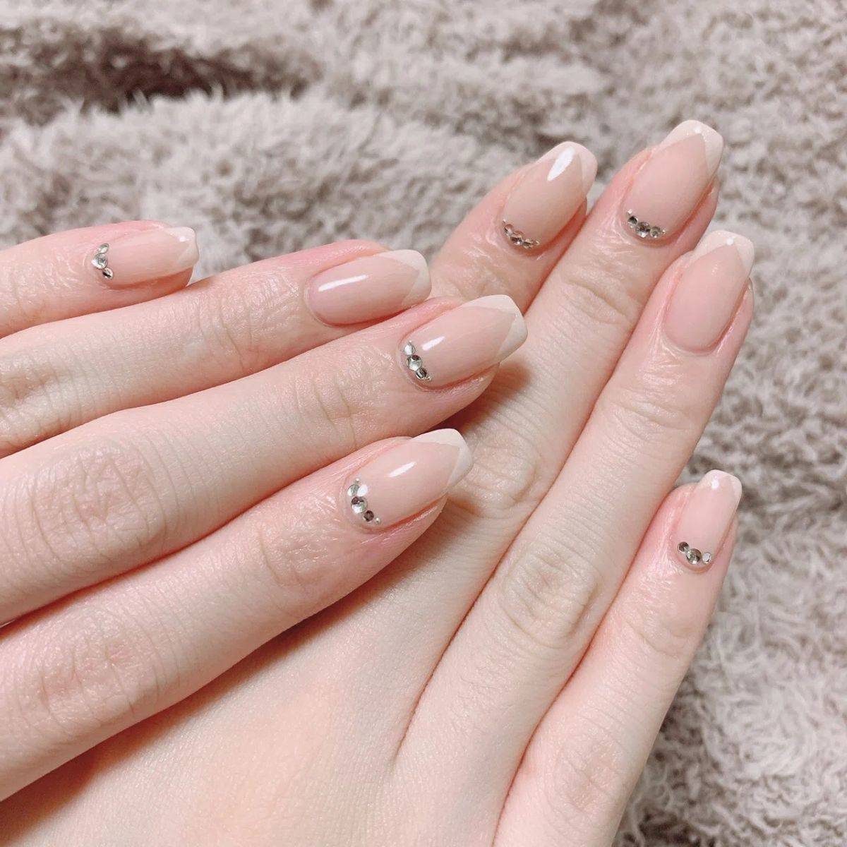 淡いミルキーピンクを基調としたフレンチネイルは上品見えするため、オフィスネイルにも◎