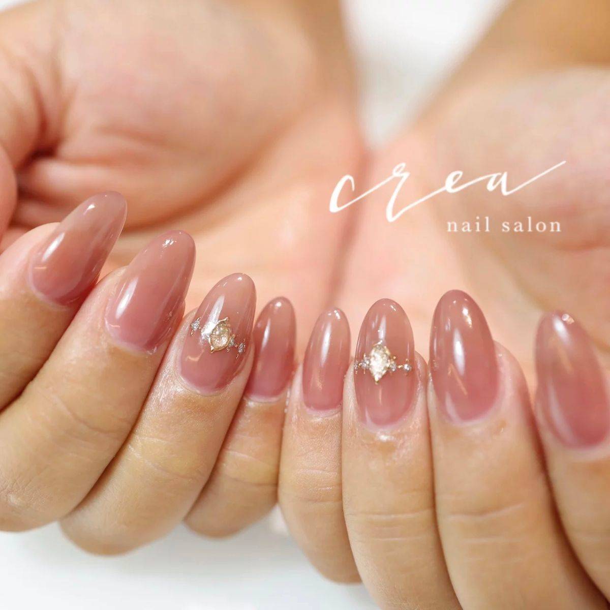肌なじみのいいピンクブラウンをベースにすることで、ビジューやラメを加えたアレンジを楽しみやすくなりますよ。