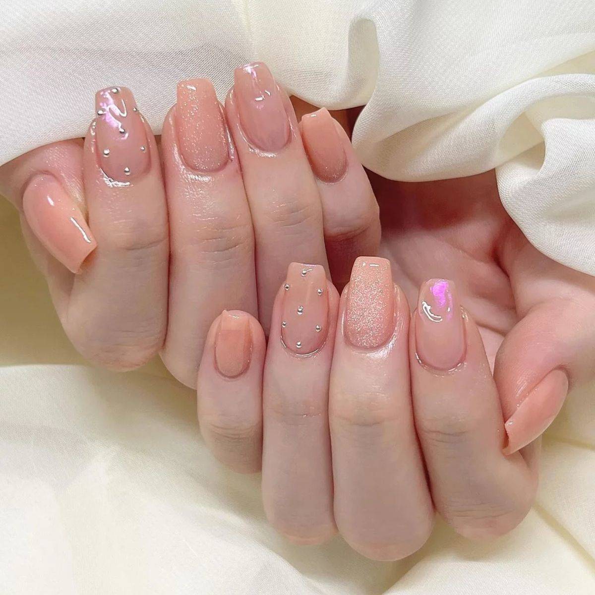 爪の先にストーンやパールをのせて立体感を出すのもおしゃれです。