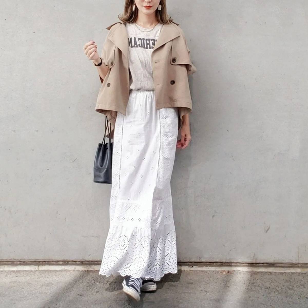 【4月編】今っぽいスカートコーデ⑤トレンチコート×レーススカート