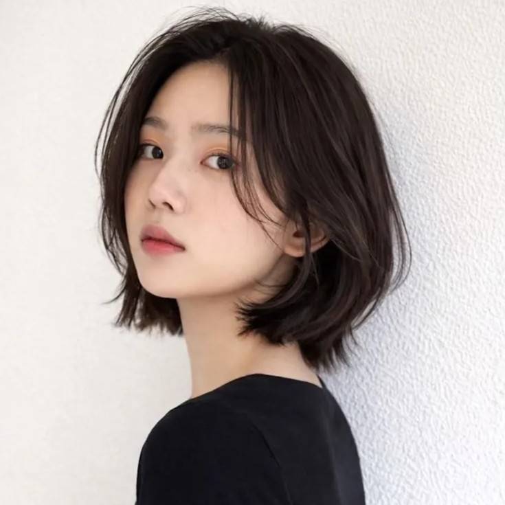 小顔効果の高い丸みショートボブは、下重心なシルエットで今っぽい印象に仕上げると◎