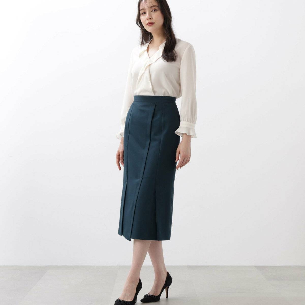 最後にご紹介するのは、タイトスカートを使ったオフィスカジュアルコーデです。