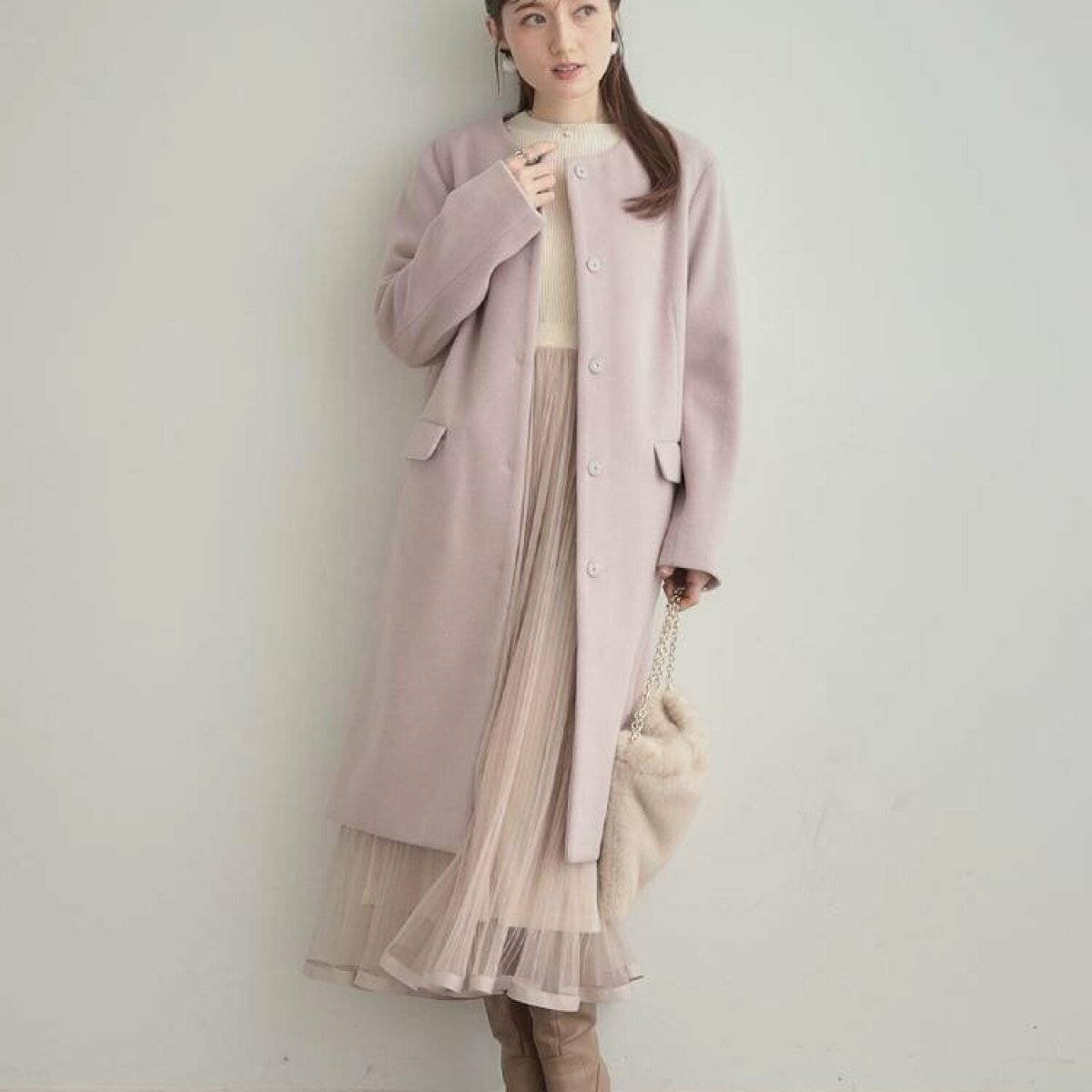 冬のお嬢様コーデなら、優しく見えるペールトーンのコーディネートもGOOD♪