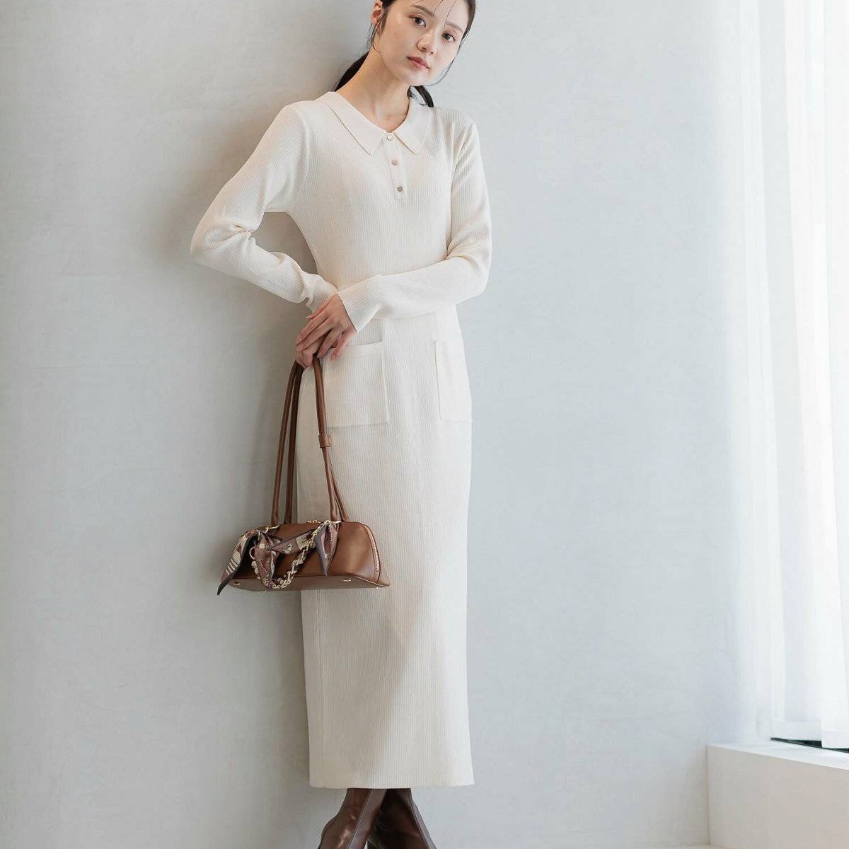 可愛らしく清楚なニットホワイトワンピ―スは、男ウケもばっちり♡